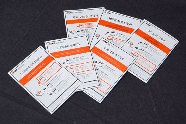 인터넷 연결을 위한 네트워크 장치로 처음 설치 시 사용자가 단계별로 따라 할 수 있도록 PC 설치 도우미와 모바일 설치 도우미, Easy Mesh 구성을 위한 3단계 안내서, 그리고 제품 구성 및 보증서 등도 포함되어 있다.