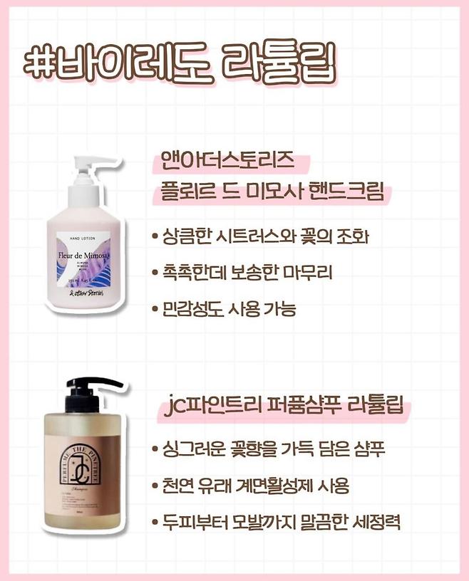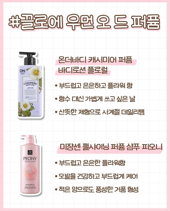이들은 고급스러운 향기와 함께 피부에 자극 없이 사용할 수 있는 제품들로, 가성비와 향기 지속력 면에서 좋은 평가를 받고 있습니다.
