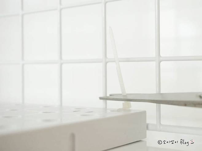 케이블 타이 머리가 위로 올라와 있으면 바구니를 밀고 당길 때 걸리적거릴 수 있는데 타이 머리를 안으로 넣어주면 괜찮더라고요.