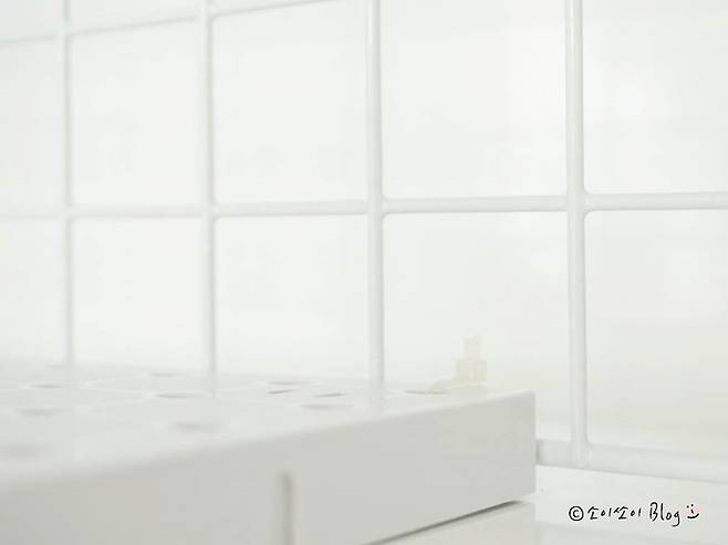 타공보드가 완벽하게 고정되진 않았지만 간식 정도의 무게는 거뜬히 버틸 수 있어 밑으로 내려앉거나 하지 않아 다행이에요. :)