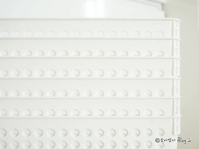 적층이 가능한 펜트리 메쉬바구니에요. 다이소몰에서 검색해 보니 색상은 2종이네요. 지금 보시는 베이지와 핑크가 있대요~ 하지만 정리는 뭐다? 화이트다!