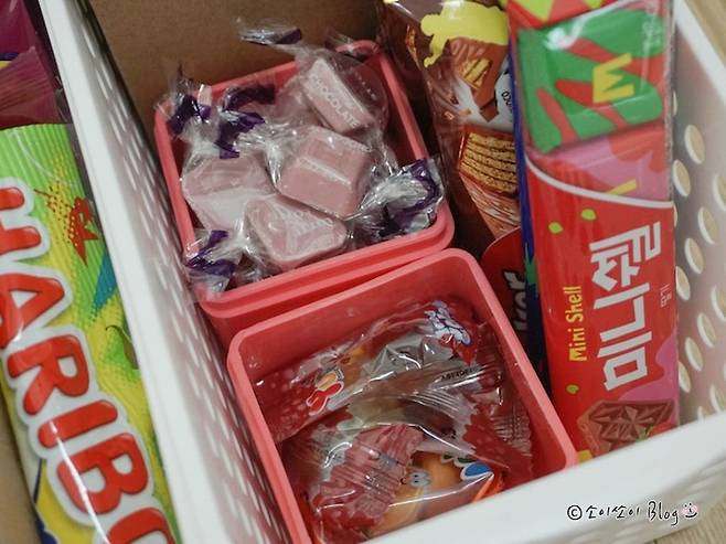 과자는 과자대로 사탕은 사탕대로 종류별로 구분해 담아봤어요.