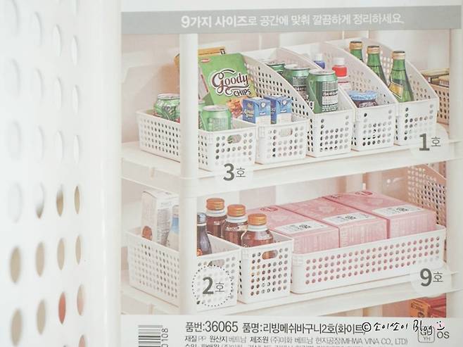 리빙 메쉬바구니 사이즈는 4가지로 1호/2호/3호/9호 준비돼 있어요~ 파일 정리함처럼 생긴 1호도 괜찮아 보이네요. 다음엔 저걸 활용해 뭘 만들어 볼까 싶어요~