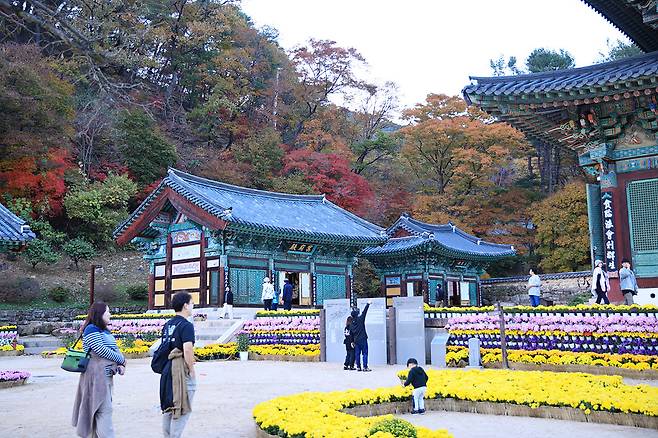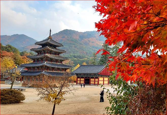 가을이 되면 단풍잎이 사찰 경내를 붉게 물들이며 고요하고 장엄한 분위기를 자아냅니다.