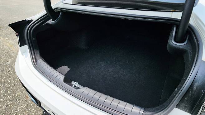 전륜구동 중형 세단답게 2열 공간은 넓고 여유롭다. 루프 형상이 패스트 백 스타일이지만, 의외로 2열 머리 공간도 딱히 답답하지 않았다. 시승 차량은 엔트리 모델이다 보니 C타입 충전 포트와 에어벤트 정도로 편의 장비가 간결하다. 만약 풀 패키지 사양을 출고한다면 2열에도 시트 열선과 암 레스트, 수동식 도어 커튼 등 다양한 장비가 추가될 것이다. 뒷유리 전동식 블라인드까지 추가되며, 6:4 시트 폴딩까지 지원된다. 스마트 전동 트렁크는 익스클루시브 사양부터 적용되며, 공간은 역시 넓고 평탄하여 사용하기 좋다.