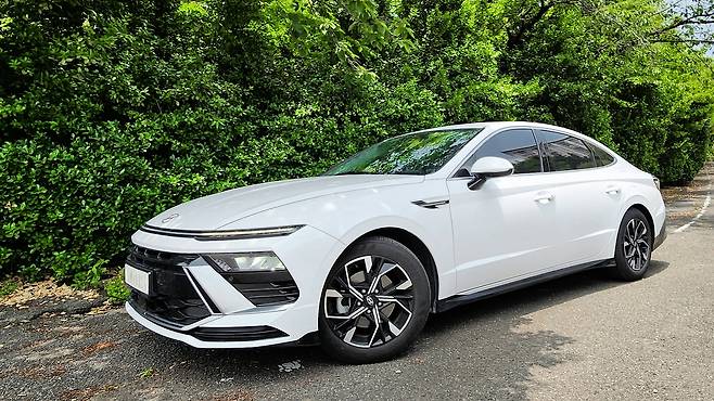 시승 차량은 현대자동차의 쏘나타 2.0 가솔린 프리미엄이다. 2.0L 자연흡기 가솔린 엔진을 채택하고, 변속기로는 8단 대신 6단 토크컨버터가 맞물린다. 추가로 들어가는 편의 장비는 '인포테인먼트 내비' 하나의 패키지뿐이다. 패키지에는 12.3인치 디지털 클러스터와 내비게이션 병렬 디스플레이, 듀얼 풀 오토 에어컨, 레인 센서 등의 편의 장비가 추가로 도입된다. 함께 무드램프와 멜란지 니트 실내 마감이 더해졌다. 하나의 패키지치고 옵션 구성이 많긴 하나, 프리미엄은 쏘나타 라인업 중 가장 하위 등급이라는 점 참고하시면 되겠다.