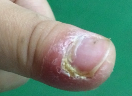 손톱 주변이 벌겋게 부풀어 오르면서 통증과 열감이 느껴집니다. 스치기만 해도 심한 통증이 생기며, 이때부터는 일상생활에 불편함을 느끼게 됩니다.