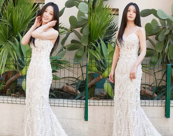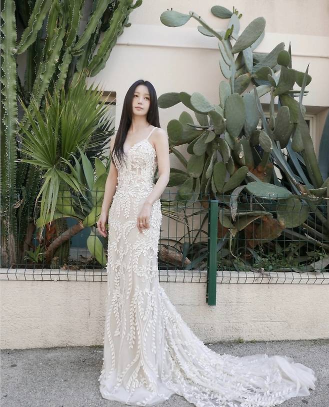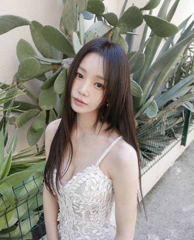 남규리는 화사한 레이스 자수가 정교하게 수놓인 시스루 슬립 드레스를 입고 야외에서 포즈를 취하며 자연광 아래에서도 돋보이는 청초한 분위기로 시선을 압도했습니다.
