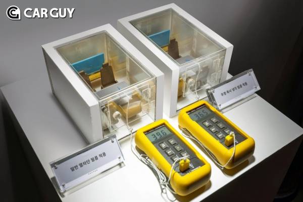 차량의 글라스에 적용할 수 있을 정도로 양산성을 고려해 대면적화까지 성공한 사례는 현대차∙기아가 세계 최초다. 다층 필름 구조로 이뤄진 이 소재는 외부로부터 들어오는 자외선, 가시광선, 근적외선과 같은 열을 차단하고 효과적인 복사 냉각을 위해 원적외선대의 열을 방사한다.