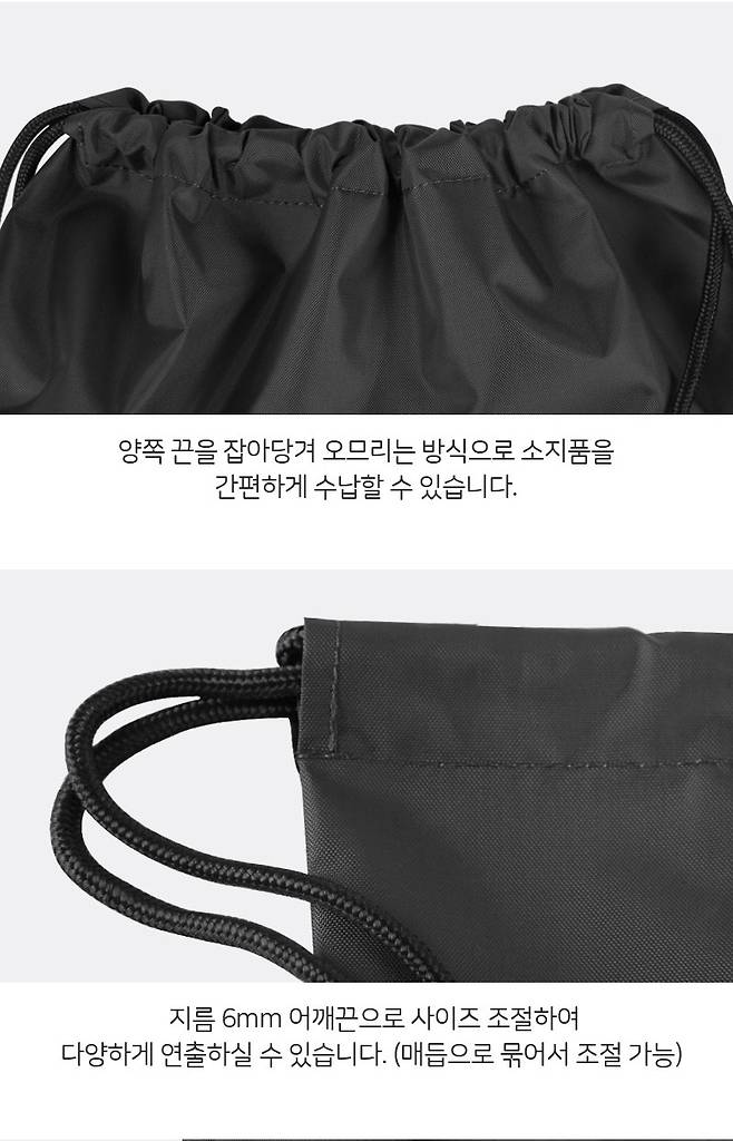 양쪽 끈을 잡아당겨 오므리는 방식으로 간편하게 수납 가능합니다!