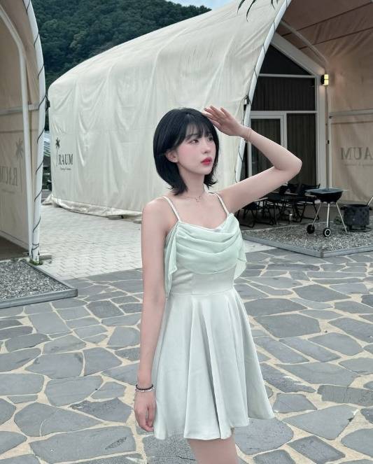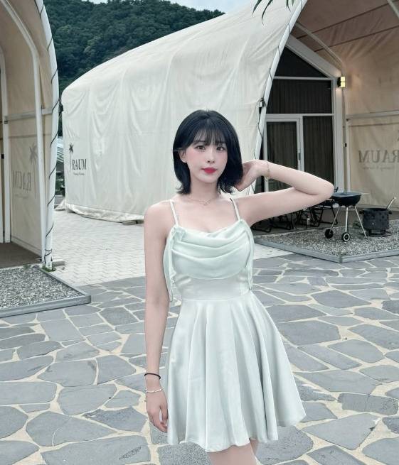 호캉스 가서 “예쁘다” 소리 듣고 싶다면 주목! 살랑살랑 민트 컬러 슬립 드레스는 실내 조명은 물론, 야외 햇빛 아래에서도 얼굴 톤을 화사하게 살려줍니다. 드레이핑된 네크라인 덕분에 어깨부터 쇄골까지 여리여리하게 연출이 가능! ✔️ 사진 한 장만 찍어도 인생 프로필 사진 예약입니다 😍