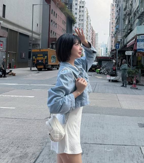 👗 3. 화이트 미니 원피스 + 크롭 청자켓: 데이트 여친룩 완성