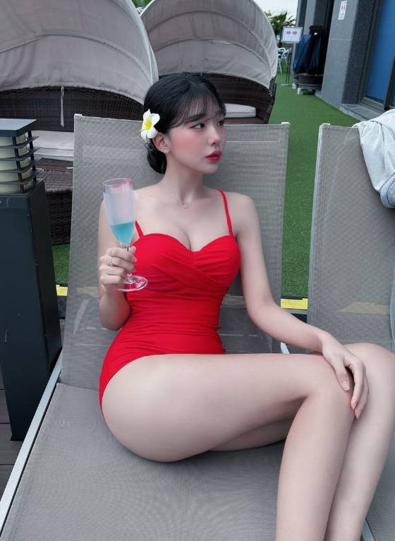 진짜 여름 여신이 강림한 듯한 착각을 불러일으키는 클래식한 레드 원피스 수영복 스타일! 딱 붙는 실루엣에 꼬임 디테일까지 더해져 군살 커버는 물론, 허리 라인을 슬림하게 연출해주는 센스까지 엿볼 수 있습니다. 💬 여기에 칵테일 한 잔 들고 있으면… 남심 저격은 이미 완료! 시선 강탈 그 자체입니다.