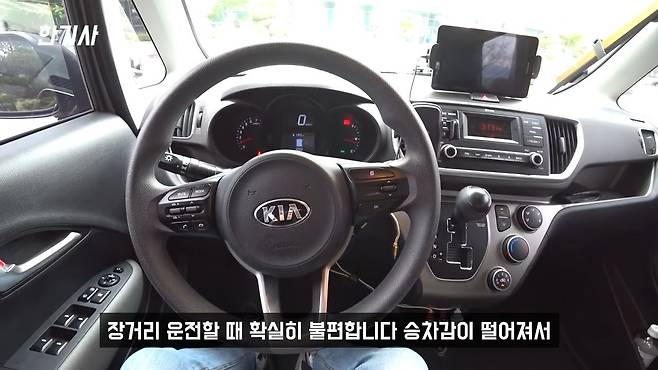 레이의 단점은 역시나 시승감, 승차감이에요. 승차감이 그렇게 좋지는 않습니다. 경차니까 사실 그런 건 좀 감안해서 탄다고 하면 특별히 상관없는데, 오래 타면 좀 충격이나 이런 것들이 고스란히 다 들어와요. 특히 방지턱이나 이런 거 넘어갈 때 아찔합니다. 차와 한 몸이 되는 느낌이죠.
