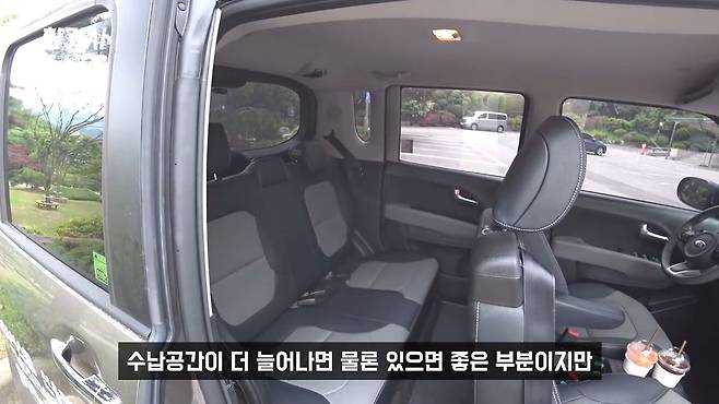 또 다른 단점은 장거리 운전할 때 승차감 때문에 확실히 불편합니다. 장거리 운전할 일이 있으면 제가 웬만하면 이 차로는 운전을 안 해요. 차라리 버스를 타거나 다른 차를 렌트를 해서 간다거나 해요. 사실 트렁크가 그렇게 많이 넓진 않아요. 트림이 좀 높아지면 뒷열도 앞으로 밀 수가 있어요. 근데 깡통인 이 레이는 트렁크 적재량이 많진 않아요.