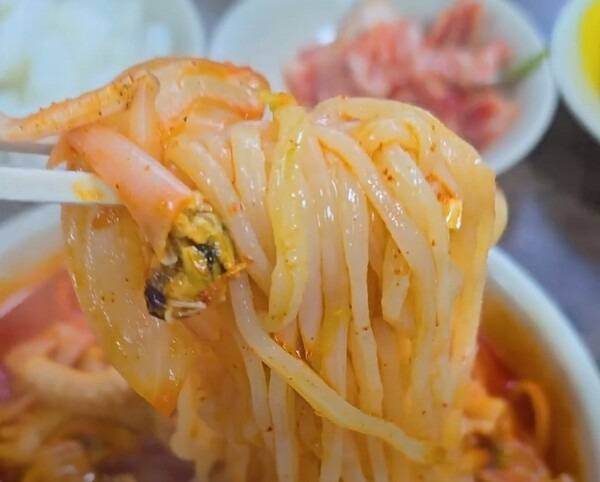 여기에 쑥갓도 듬뿍 올라가 깔끔한 맛을 더해주며, 오징어와 홍합도 들어 있어 해물 맛이 풍부하고 매운탕을 먹는 듯한 기분까지 든다. 내륙 지방인 원주에서 어떻게 구한 것인지, 해안가와 비교해도 싱싱한 해산물은 알탕의 깔끔함을 배로 올려준다.