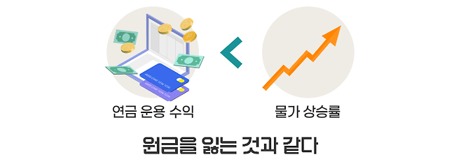 연금자산을 적립하고 인출하는 데까지 적어도 20~30년 이상의 긴 시간이 걸립니다. 연금을 운용해서 물가 상승률 이상의 수익을 내지 못하면 원금을 잃은 것과 마찬가지라는 것을 알아야 합니다.