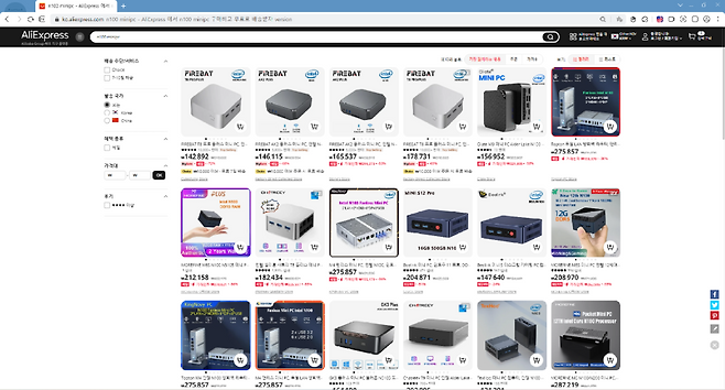 알리익스프레스에서 N100 미니PC만 검색해도 무수한 제품들이 나옵니다. 저는 그 중에서 브랜드도 괜찮고, 사양도 나쁘지 않은 제품을 선택했어요. 파이어뱃 사의 T8플러스 제품입니다. 사양은 인텔 N100 프로세서에 16GB 메모리, 512GB SSD 하드디스크입니다. 다양한 입출력단자와 함께 무선 랜도 지원하죠. 당연히 윈도우11도 내장되어 있고요.