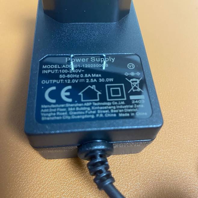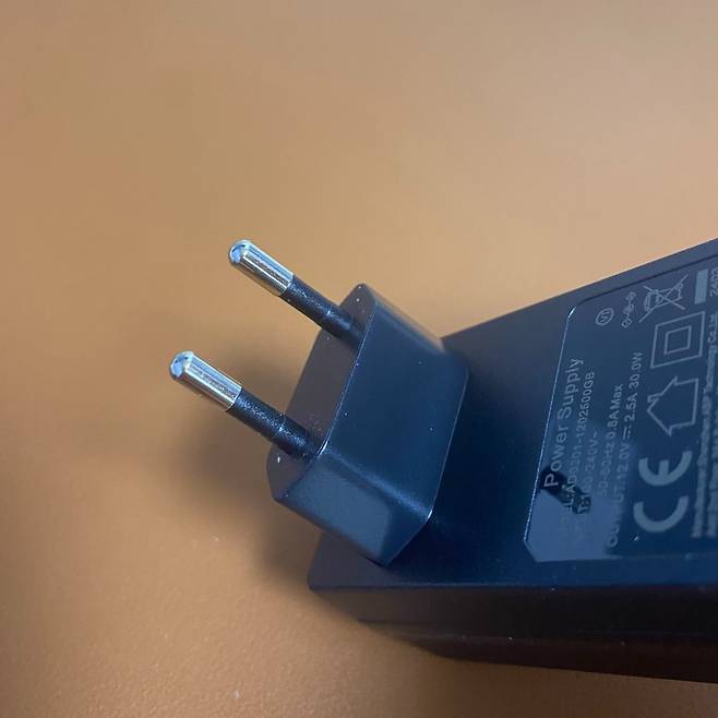 어댑터는 30와트 출력입니다. 프로세서가 워낙 저전력이라서 고용량의 어댑터는 필요 없는 것 같습니다. 아쉽게도 USB-C PD 충전은 안되네요. 어댑터는 EU 방식이지만 팁의 금속 부분 굵기가 굵어서 콘센트에 연결해도 쉽게 빠지지 않습니다.