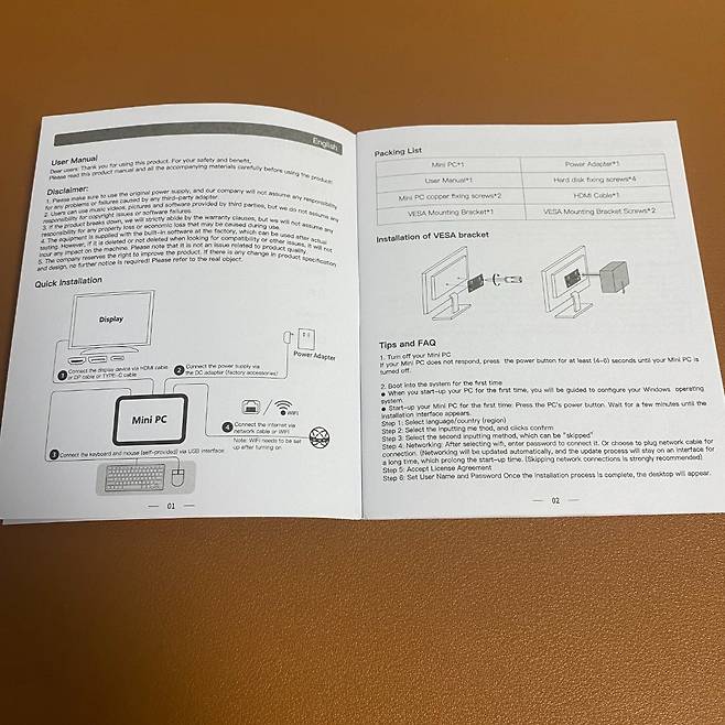 패키지를 열면 겉과는 달리 꼼꼼하게 포장되어 있습니다. 대부분의 충격을 흡수할 정도의 스펀지로 잘 포장되어 있습니다. 구성품은 본체와 전원 어댑터, 케이블, 모니터에 연결할 베사 마운트까지 바로 사용하면 될 정도로 탄탄하게 준비되어 있네요.