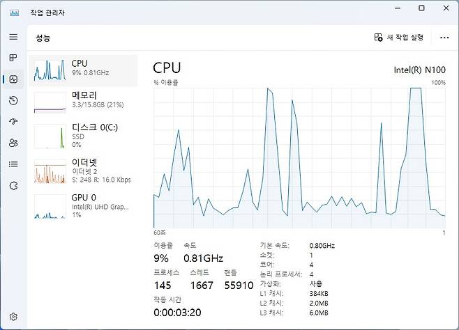 이처럼 미니PC의 인기를 견인하는 주요한 요인은 인텔 CPU입니다. 그 전에는 주로 아톰 프로세서를 사용하여 겨우 윈도우만 돌릴 수 있는 수준이었지만 인텔이 N100이라는 12세대 CPU를 미니PC에 적용하면서 반전이 시작된 것 같습니다. 기존의 아톰같은 보급형 프로세서와 같은 라인업이지만 성능은 한수 위니까 말이죠. 거기에 중국산 미니PC들은 대부분 윈도우11을 기본 탑재하기 때문에 가성비로 본다면 따라올 자가 없어진 것이죠.