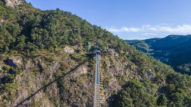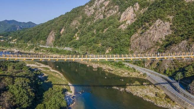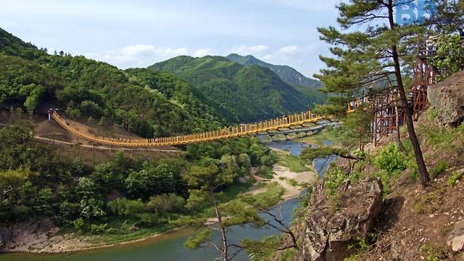 아찔한 출렁거림에 심장이 덜컥 내려앉는다. 산 중턱을 잇는 다리를 건너는 동안, 금강 상류의 깊은 물빛과 협곡이 만들어낸 절경이 눈앞에 펼쳐진다.