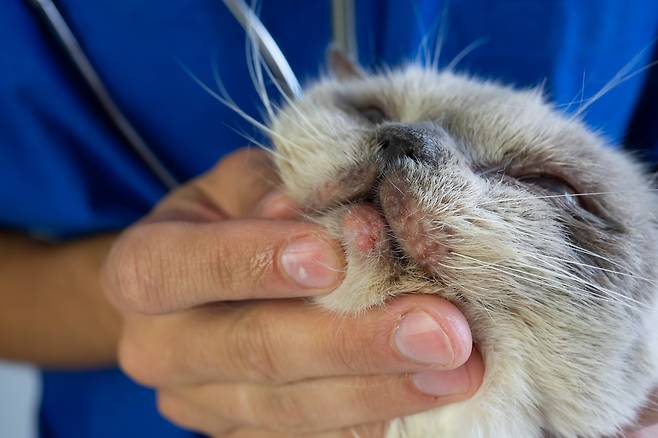 고양이 턱드름은 초기에 치료하는 게 중요한데요. 초기엔 별 증상이 없지만, 방치할 경우 증상이 악화해 딱딱한 멍울이 만져질 수도 있다고 합니다.