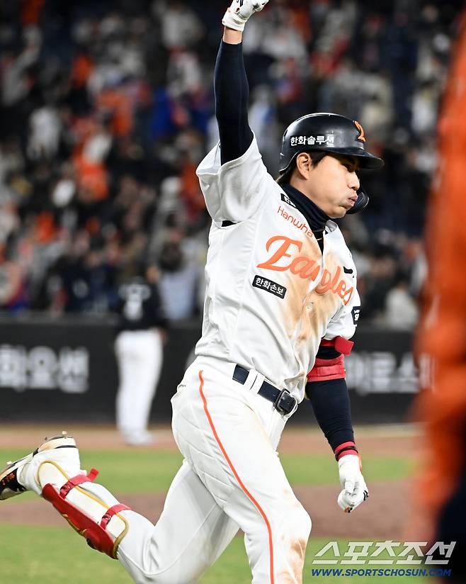 1일 대전한화생명볼파크에서 열린 KT와 한화의 경기. 8회말 2사 1,2루 한화 심우준이 동점 3점홈런을 치고 환호하고 있다. 대전=허상욱 기자wook@sportschosun.com/2026.04.01/