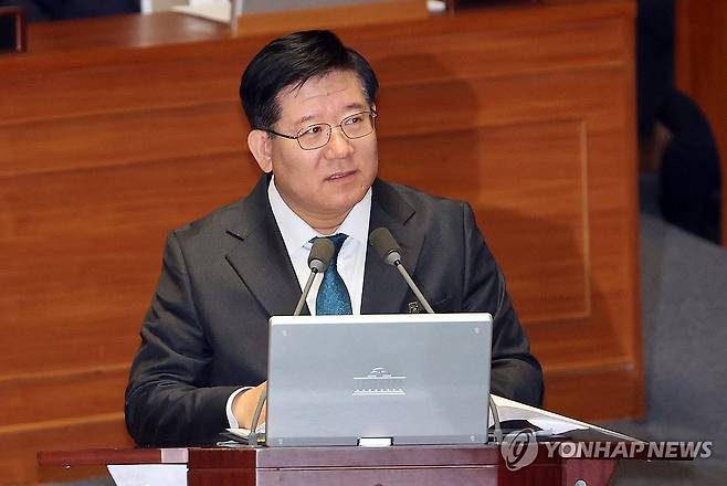 (서울=연합뉴스) 박동주 기자 = 경찰청장 직무대행를 맡은 이호영 경찰청 차장이 11일 오후 국회 본회의에서 진행된 '윤석열 대통령 위헌적 비상계엄 선포 내란행위 관련 긴급현안질문'에서 답변하고 있다. 2024.12.11