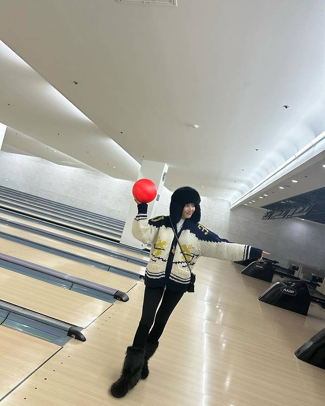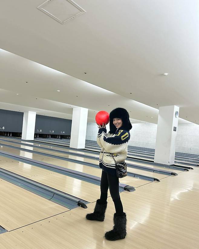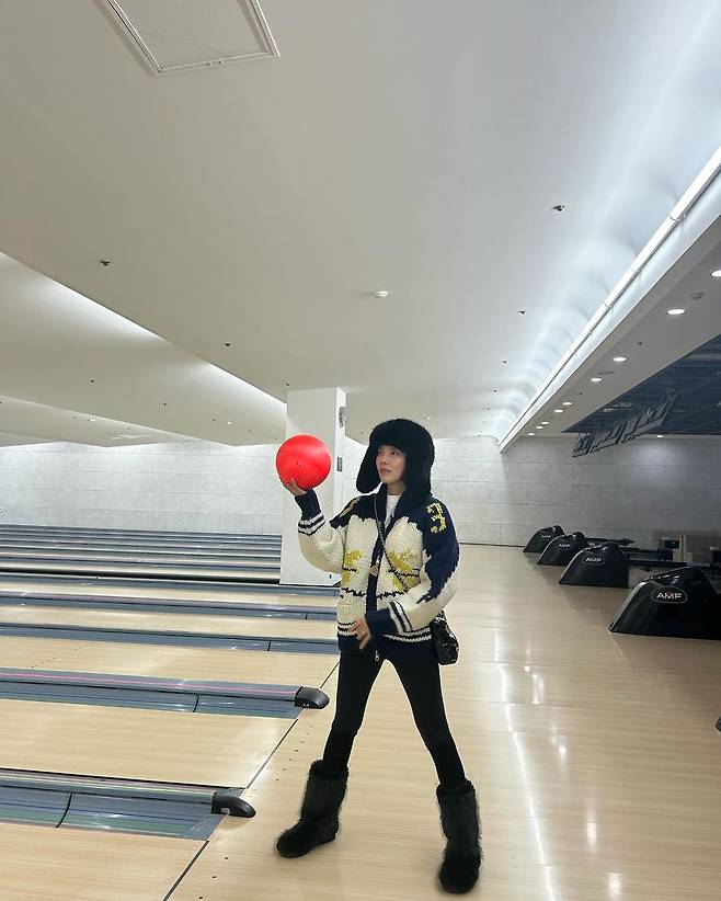 사진 속 손담비는 그레이 집업과 블랙 스키복을 입고 파란 바라클라바를 써서 귀여움을 한층 더했다. 또한 실내 볼링장에서는 아이보리와 블랙이 믹스된 가디건과 블랙팬츠와 털모자와 털신을 더하여 러블리한 데일리룩을 공개했다.