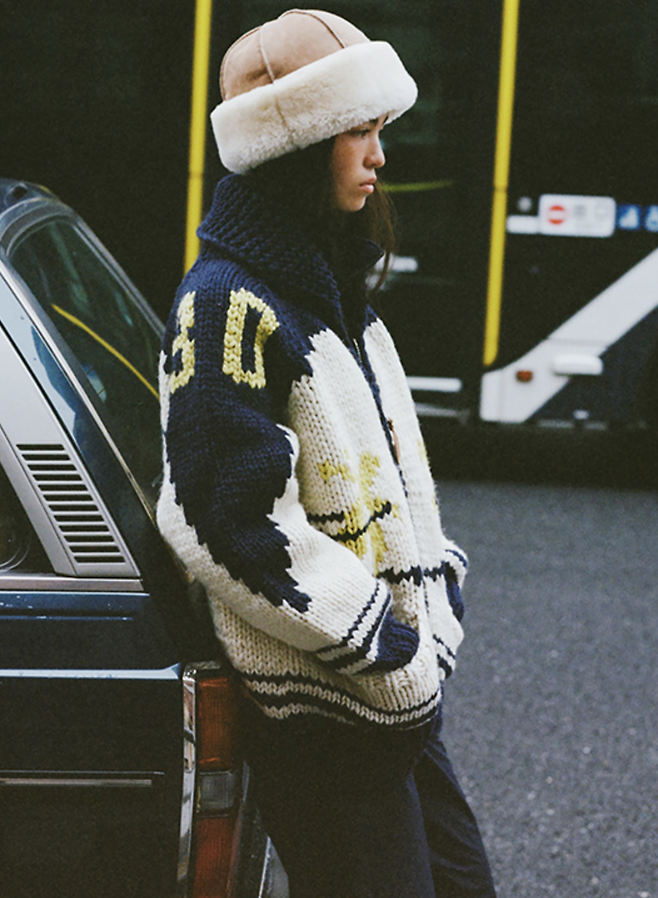 카나타와 협업으로 제작된 배색 스키 패턴 집업 가디건 입니다. 전체적으로 여유 있는 사이즈며 지퍼로 마무리 되었습니다.