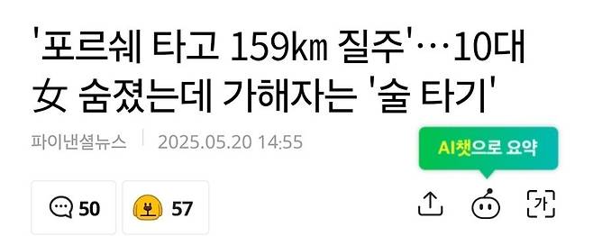 '포르쉐 타고 159㎞ 질주'…10대女 숨졌는데 가해자는 '술 타기' : 네이트 뉴스