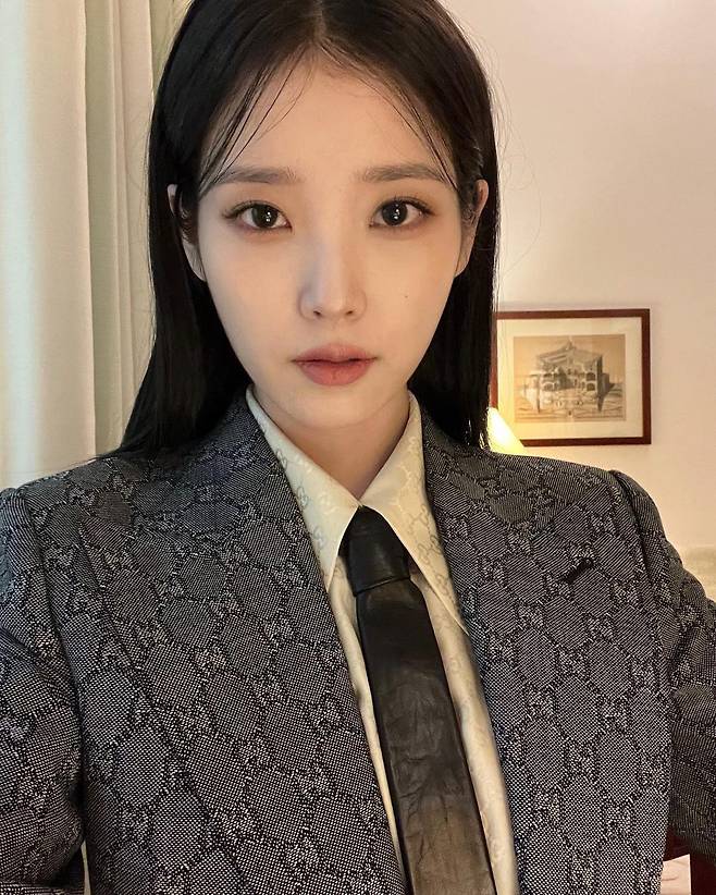 공개된 사진 속에는 스태프와 함께 복도를 걷고 있는 아이유의 모습이 담겼다. 명품 슈트를 차려 입은 아이유는 카리스마 넘치는 표정으로 당당하게 걸어 '보스'로 변신했다. 청초했던 아이유의 반전 시크함이 돋보인다.