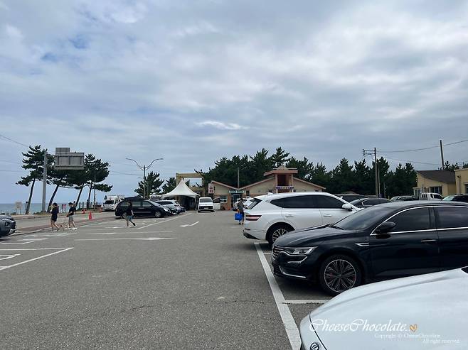 지경리 해수욕장 주차장은 바로 해변 앞에 있어서