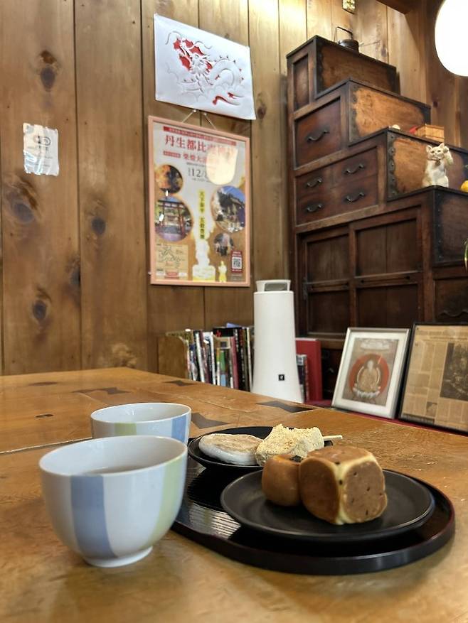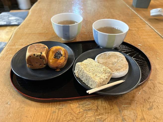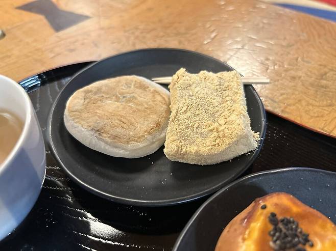 과자맛도 훌륭했고 추운날 몸 따뜻하게 녹이면서 눈내리는 창 보는게 운치가 있었습니다. 야키모찌 맛도 좋았구요.