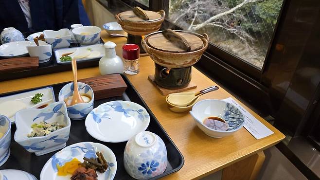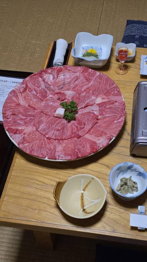 류진 온천 료칸에서 맛본 간사이식 스키야키는 두 달 전부터 예약해둔 특별한 요리였습니다. 부드럽고 깊은 풍미의 소고기와 와카야마의 좋은 쌀로 지은 밥의 조합은 말로 표현할 수 없을 만큼 감동적이었어요. 우동 사리를 추가해 마지막 한 방울까지 국물을 즐긴 것도 잊지 못할 기억입니다.