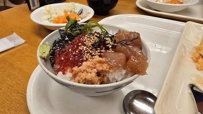 진한 돈코츠 간장 베이스 국물과 얇고 부드러운 면발, 그리고 심플한 토핑이 어우러진 와카야마 라면은 여행 중 가장 간단하지만 만족스러웠던 한 끼였습니다. 함께 곁들인 고등어 초밥은 와카야마의 미식 문화를 잘 느낄 수 있는 특별한 경험이었어요.