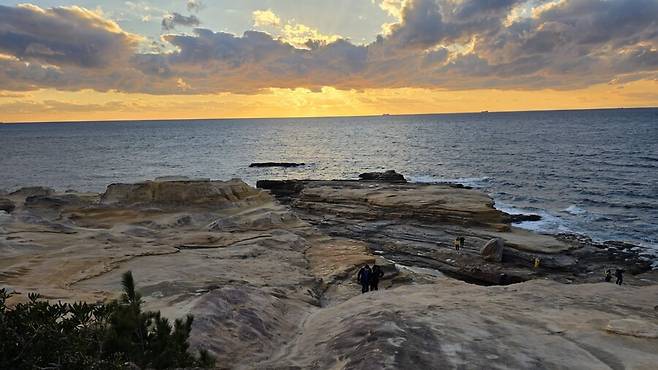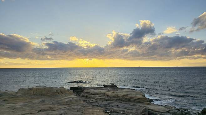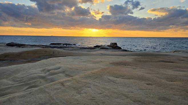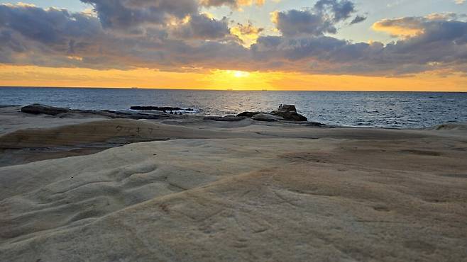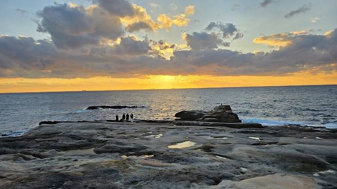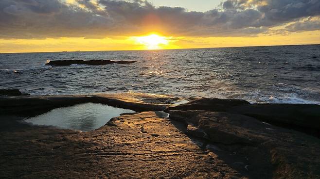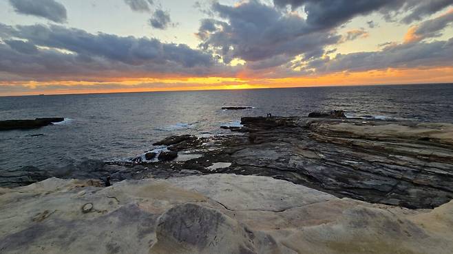 평평한 바위층 위에서 붉게 물드는 석양을 바라보는 순간은 여행의 하이라이트였습니다. 바다와 하늘이 황금빛으로 물들며, 파도가 부딪치는 소리가 장관을 더했죠. 이곳은 꼭 일몰 시간에 맞춰 방문하시길 추천드립니다. 사진으로 담기엔 부족할 만큼 웅장한 자연의 모습을 마음속에 새길 수 있었습니다.