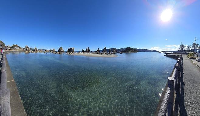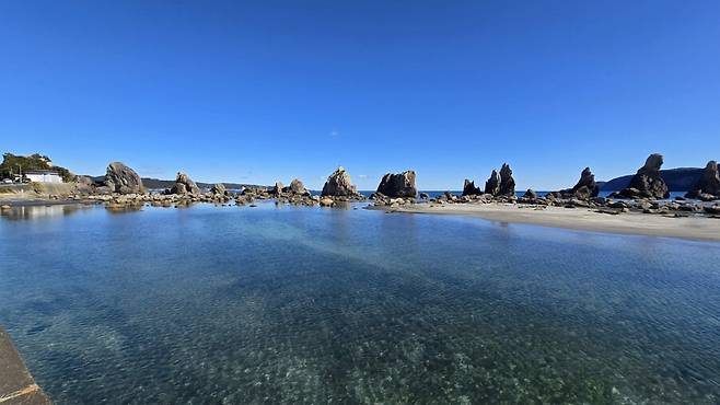 겨울철의 시라하마 해변은 여름과는 또 다른 매력을 선사합니다. 맑고 고요한 바다를 바라보며 산책하는 것만으로도 힐링이 되었어요. 특히 이곳의 하얀 모래사장은 와카야마 여행의 포근한 추억으로 남았습니다.