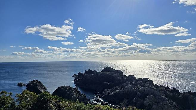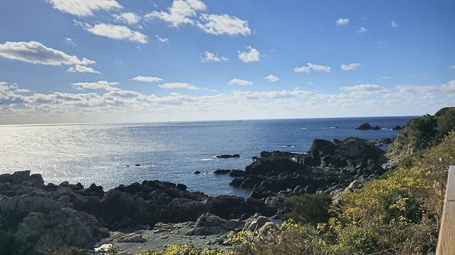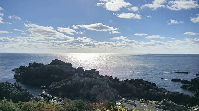 바다와 접한 넓은 평탄한 바위층이 웅장하고 독특한 분위기를 자아냄.