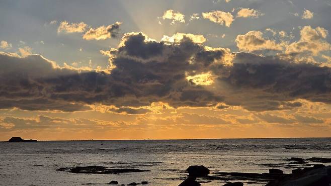 해가 뉘엿뉘엿 지기 시작할 무렵, 바위층 위로 붉게 물든 햇살이 스며들며 황금빛으로 물드는 풍경은 숨을 멎게 할 만큼 아름다웠습니다. 바다 위에 비치는 석양의 빛은 잔잔한 파도와 함께 춤을 추는 듯했고, 그 빛이 바위 틈새까지 은은히 스며드는 모습은 말로 다 표현할 수 없는 감동을 선사했습니다.