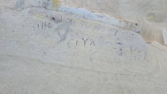 그러나 어딜가나 머리 나쁜 애들이 자기이름 바위에 새기는 만행을 저지르는군요.