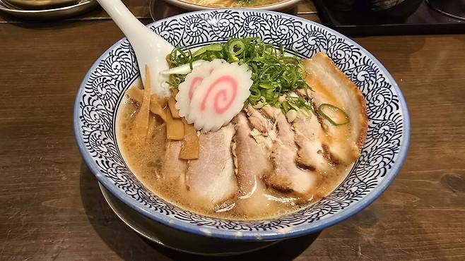 주로 돼지뼈를 우려낸 진한 돈코츠 간장 베이스.