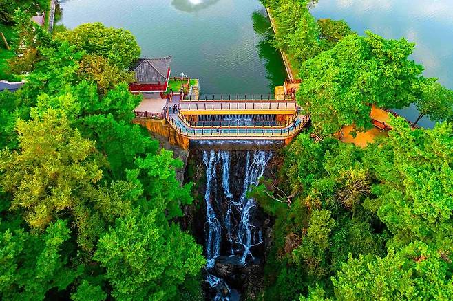 이곳에서는 조금 더 안정감 있게 폭포의 장관을 감상할 수 있으며 경호루 뒤쪽으로 이동하면 웅장한 물줄기가 더욱 시원하게 느껴진다.