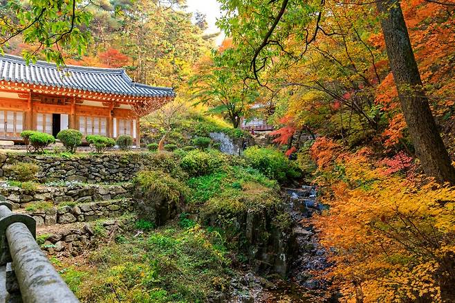제1관문에서 제2관문까지는 약 3km. 부담은 없지만 중간중간 멈춰 서고 싶은 풍경이 많아 누구나 발걸음이 느려지는 구간입니다. 해발 300m 부근에서 시작된 단풍은 점차 짙어지고소원을 담아 쌓아 올린 돌탑들이 여행자를 맞이합니다. 제2관문에 가까워질수록 숲의 기운이 더 깊고 묵직해져 가을을 걷고 있다는 감각이 온몸에 스며듭니다.