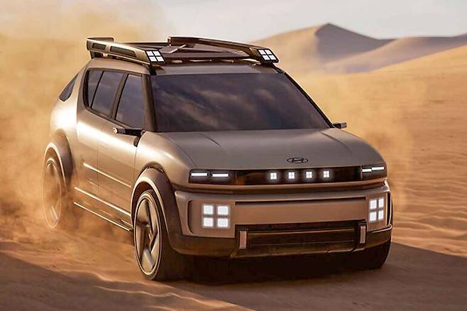 전면부 램프를 덮는 듯한 보닛의 형상은 마치 N 비전 74의 쐐기형 얼굴처럼 공격적이다. 측면부의 클래딩과 대담한 라인은 레트로한 분위기를 자아내면서도 미래지향적으로 느껴진다.