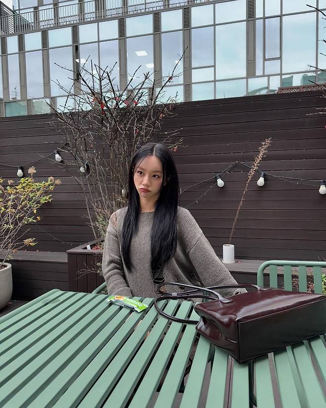혜리는 차분한 베이지 톤의 니트를 입고 자연스러운 매력을 발산하고 있다. 과하지 않은 스타일링으로 편안하면서도 세련된 분위기를 자아내며, 테이블 위에 놓인 소품과 어우러져 일상적인 순간을 담백하게 표현했다. 브라운 가방은 전체 룩에 따뜻함을 더하는 포인트다.
