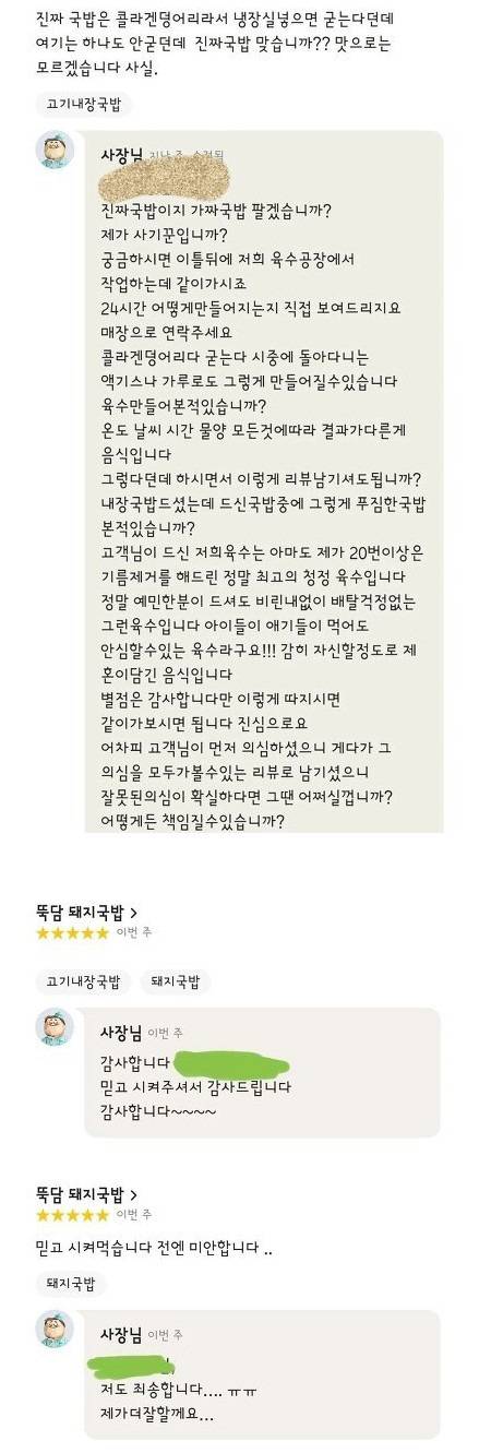 진짜 국밥 맞냐는 리뷰에 울분 토한 사장님
