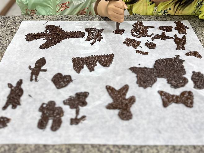 초콜릿 전문가가 직접 지도해주고, 아이들도 쉽게 따라 할 수 있도록 구성되어 있어요.