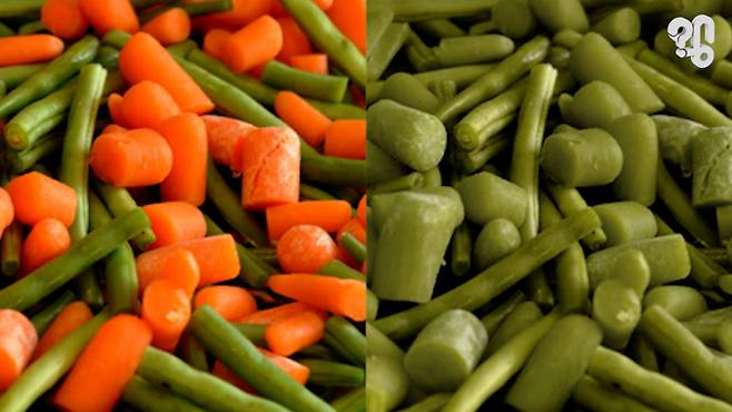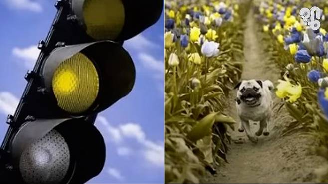 그럼 적록색약인 전재준과 예솔이가 보는 세상은 어떨까? 우리 눈엔 이렇게 보이지만 이들이 보는 세상은 이렇게 적색과 녹색이 잘 구분이 되지 않는다. 보통 일생생활할 때는 아무런 지장이 없기 때문에 본인의 색각 이상을 모르고 지내다가 색깔이나 디자인 관련 활동에 몰두하다 자신의 증상을 알아차리는 경우가 많다.